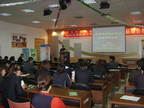 [2005年4月15日,山東濰坊]  2005年4月15日至17日,山東濰坊國青醫(yī)藥有限公司邀請了商業(yè)和醫(yī)院客戶舉行了“美寶系列產(chǎn)品推介會”,在三天的活動中,安排了豐富的活動,國青醫(yī)藥下屬連鎖藥店店員參加了美寶產(chǎn)品知識培訓,并舉行了產(chǎn)品促銷。