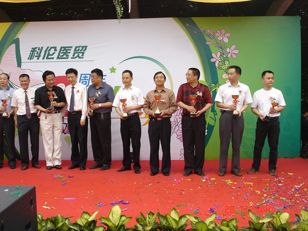 [2005年4月25-28日,四川成都]  春華四月,四川科倫實業(yè)集團下屬的科倫醫(yī)藥貿(mào)易有限公司迎來了兩周年慶典,在盛大的慶典活動中對石藥集團、哈藥總廠、西安利君、華北制藥、惠氏-百宮、汕頭美寶等十家國內(nèi)著名制藥企業(yè)授予2004年最具商業(yè)價值合作伙伴“寶石獎”。