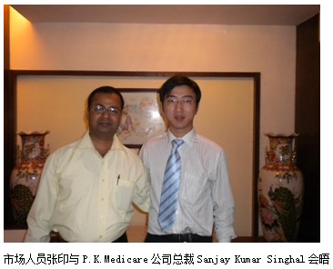 3月2日下午3時(shí),P.K.Medicare公司總裁Sanjay Kumar Singhal從Jodhpur(新德里附近) 乘飛機(jī)準(zhǔn)時(shí)到達(dá)孟買(mǎi)與市場(chǎng)人員張印會(huì)晤。雙方在下榻的Kohinoor Continental酒店進(jìn)行了長(zhǎng)達(dá)8個(gè)小時(shí)的交流。首先,張印向Sanjay Kumar Singhal介紹了美寶國(guó)際集團(tuán)的概況、美寶的科學(xué)技術(shù)、美寶再生系列產(chǎn)品和國(guó)際市場(chǎng)的發(fā)展等情況。隨后,雙方對(duì)藥品、保健品、醫(yī)療器械在印度藥監(jiān)局的注冊(cè)程序和周期,印度燒傷創(chuàng)瘍醫(yī)藥市場(chǎng)在美寶印度分公司的經(jīng)營(yíng)模式和發(fā)展戰(zhàn)略等進(jìn)行了深入的交流??偛肧anjay Kumar Singhal對(duì)美寶的原位再生復(fù)原技術(shù)的推廣及再生系列產(chǎn)品的經(jīng)營(yíng)戰(zhàn)略(以技術(shù)帶動(dòng)市場(chǎng),市場(chǎng)推廣技術(shù))非常贊同,并向張印提出了關(guān)于美寶印度分公司將來(lái)的發(fā)展戰(zhàn)略等建設(shè)性意見(jiàn),最后雙方達(dá)成了共識(shí)。