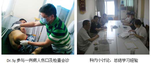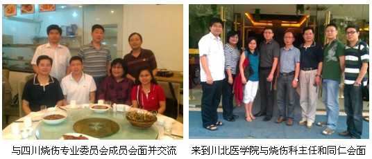 2011年6月19日至7月2日,菲律賓兩名高年資燒傷整形科專家,Dr. Mijares及Dr. Sy分別來到中國(guó)中西醫(yī)結(jié)合學(xué)會(huì)基地醫(yī)院:四川省南充市川北醫(yī)學(xué)院附屬醫(yī)院及雅安市人民醫(yī)院進(jìn)行參觀學(xué)習(xí)再生醫(yī)療技術(shù),中國(guó)中西醫(yī)結(jié)合學(xué)會(huì)燒傷專業(yè)委員會(huì)四川分會(huì)的胡棟材教授,邱為東秘書長(zhǎng),川北醫(yī)學(xué)院附屬醫(yī)院燒傷科主任周國(guó)富教授,雅安市人民醫(yī)院燒傷科主任兼燒傷專業(yè)委員會(huì)副主任委員付子俊教授熱烈歡迎并進(jìn)行了大量的學(xué)術(shù)指導(dǎo)和生活。中國(guó)中西醫(yī)結(jié)合學(xué)會(huì)燒傷專業(yè)委員會(huì)對(duì)外辦公室舒葉陪同翻譯。