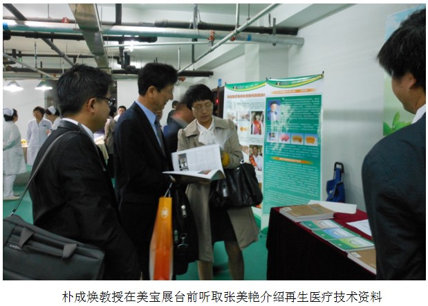 配合會(huì)議主題學(xué)術(shù)報(bào)告,北京片區(qū)專門在報(bào)告廳的門口布置了人類進(jìn)入再生生命世界主題展臺(tái),為參會(huì)的臨床醫(yī)生提供了專家咨詢交流的平臺(tái),并贈(zèng)閱學(xué)習(xí)資料,大家對(duì)《中國(guó)燒傷創(chuàng)瘍雜志》、《燒傷皮膚再生醫(yī)療技術(shù)臨床手冊(cè)》、《再生醫(yī)療技術(shù)臨床應(yīng)用指導(dǎo)叢書》(褥瘡、糖尿病足、肛腸疾病、皮膚病、難愈創(chuàng)面等分冊(cè)),受到參會(huì)醫(yī)生的歡迎,韓國(guó)的樸成煥教授饒有興趣的到展臺(tái)前進(jìn)行咨詢,他認(rèn)真聽取肖摩教授講解再生醫(yī)療技術(shù)臨床應(yīng)用規(guī)范和療效的情況之后,感嘆美寶的神奇療效,要結(jié)合整形美容專業(yè)應(yīng)用于臨床。