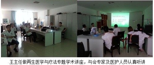 講座結束后,該科室主任及專家、醫(yī)護人員和王主任一起進一步討論了再生醫(yī)學醫(yī)療技術的治療要點,特別是再生復原療法在褥瘡、骨科慢性潰瘍、難愈合創(chuàng)面、糖尿病足、斷指再生等創(chuàng)面的治療要點。