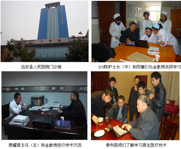 2010年12月17日,中國(guó)中西醫(yī)結(jié)合學(xué)會(huì)燒傷專業(yè)委員會(huì)金黨軍教授來(lái)到湖北省宜昌遠(yuǎn)安縣人民醫(yī)院,分別走訪了該院的ICU和骨外科。該院骨科周耀君主任和ICU陳護(hù)士長(zhǎng)分別組織科室醫(yī)護(hù)人員向金教授學(xué)習(xí)了“原位再生復(fù)原醫(yī)療技術(shù)在創(chuàng)傷潰瘍?nèi)殳彽葎?chuàng)面的臨床應(yīng)用”,金教授向大家介紹了原位再生醫(yī)療技術(shù)要點(diǎn),規(guī)范創(chuàng)面換藥處理方式和原則,以及應(yīng)用該技術(shù)對(duì)多發(fā)性特大褥瘡,糖尿病足,擠壓傷等病例的治療方法和注意事項(xiàng)。隨后,醫(yī)護(hù)人員就實(shí)際工作中遇到的問(wèn)題與金教授進(jìn)行了交流,并表示在以后治療過(guò)程中,將規(guī)范換藥技術(shù),提高護(hù)理質(zhì)量。