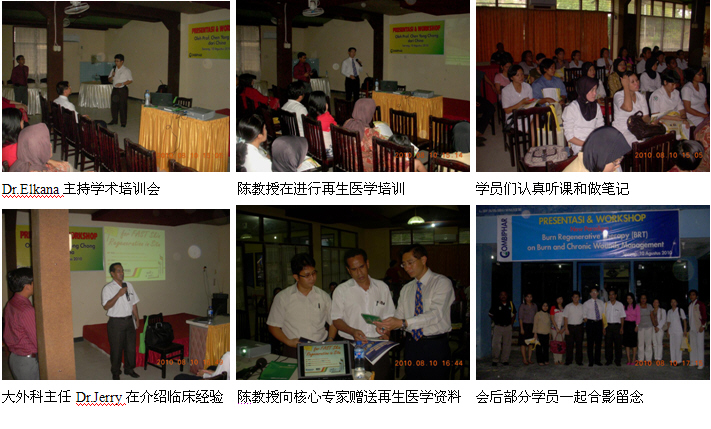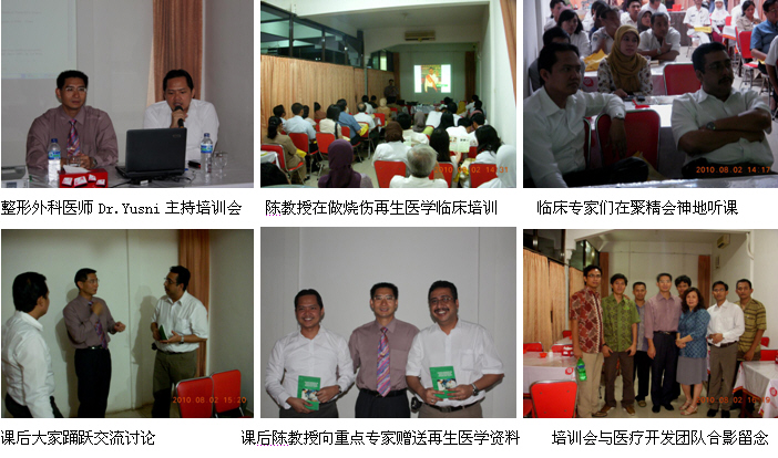 同時(shí),經(jīng)過精心策劃和安排,2010年8月1日,剛剛結(jié)束馬來西亞醫(yī)療開發(fā)與維護(hù)工作的中國燒傷創(chuàng)瘍科技中心臨床部主任、北京榮祥再生醫(yī)學(xué)研究所副所長、北京中西醫(yī)結(jié)合學(xué)會(huì)燒傷專業(yè)委員會(huì)副主任委員陳永翀教授顧不上休息,便馬不停蹄地趕往印度尼西亞(印尼),在Combiphar 負(fù)責(zé)醫(yī)療開發(fā)的Mr. Kirastha 的組織、安排和全程陪同下,展開了印尼2010年的第二輪醫(yī)療開發(fā)工作。在這次的醫(yī)療開發(fā)工作中,能夠很好地和各級醫(yī)師學(xué)會(huì)或醫(yī)院緊密合作,有效地提高了培訓(xùn)班的組織能力、影響力、學(xué)術(shù)水平等,由于有繼教學(xué)分而且培訓(xùn)內(nèi)容新穎、實(shí)用,而很受臨床醫(yī)護(hù)人員的歡迎,為醫(yī)療開發(fā)摸索出了一條很好的路子。在這次的醫(yī)療開發(fā)過程中,通過這種模式成功參加了印尼全國的燒傷整形外科大會(huì),舉辦了省級培訓(xùn)班2期,市級培訓(xùn)班3期,院內(nèi)培訓(xùn)班2期,重點(diǎn)專家學(xué)術(shù)交流5次,培訓(xùn)了燒傷、整形、普通外科、皮膚科、骨科、婦產(chǎn)科醫(yī)師和護(hù)士690多名,培訓(xùn)市場醫(yī)療開發(fā)人員19名,成功開發(fā)了不少于5家大型政府教學(xué)醫(yī)院,會(huì)診、指導(dǎo)1例大面積特重度燒傷和另外5例創(chuàng)瘍患者的治療。由于開發(fā)的路子對,達(dá)到了高效率的開發(fā)效果。下面以簡短的圖文方式與大家分享成功的經(jīng)驗(yàn)。