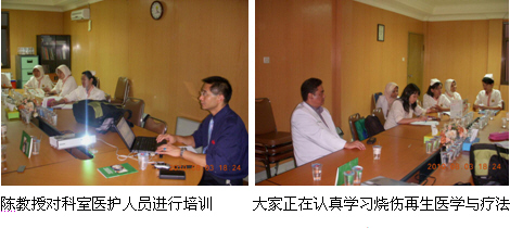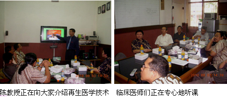 2、8月3日上午,陳教授和Mr. Kirastha剛從Probolinggo市趕回到雅加達(dá)市,顧不上休息便直接奔赴Fatmawati hospital Jakarta醫(yī)院(政府醫(yī)院,400病床,有燒傷中心)的外科教研室,給該院的外科醫(yī)師、整形燒傷醫(yī)師介紹燒傷再生醫(yī)學(xué)與療法,大家聽得很認(rèn)真,對再生醫(yī)學(xué)技術(shù)非常感興趣,達(dá)到了較好的培訓(xùn)效果,為再生醫(yī)學(xué)技術(shù)引進(jìn)該院奠定了良好的基礎(chǔ)。