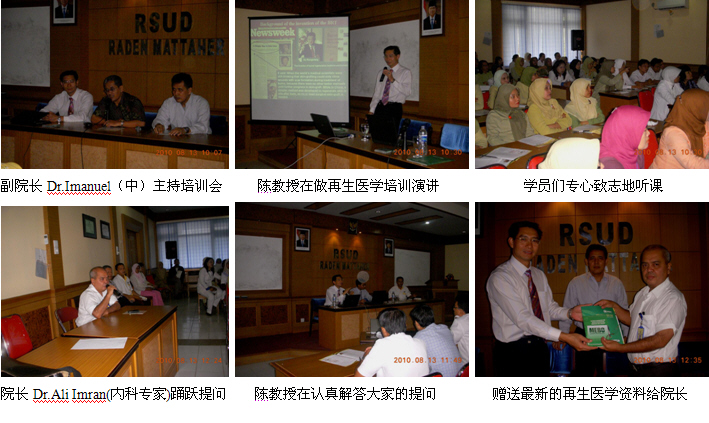 7、8月13日上午9時(shí),由醫(yī)師學(xué)會(huì)主辦的Jambi市級燒傷再生醫(yī)學(xué)臨床培訓(xùn)班(省級繼續(xù)教育項(xiàng)目,學(xué)分6分)在Raden Mattaher hospital的學(xué)術(shù)報(bào)告廳里舉辦,來自全是主要的4家政府醫(yī)院和其它10多家私營醫(yī)院的80多名臨床醫(yī)師、護(hù)士參加了這次培訓(xùn)會(huì)。培訓(xùn)會(huì)由Raden Mattaher hospital副院長Dr.Imanuel主持,醫(yī)院大外科主任Dr. Aziz介紹了應(yīng)用MEBO治療褥瘡的臨床經(jīng)驗(yàn),陳教授則應(yīng)邀作了“燒傷再生醫(yī)學(xué)與療法在燒傷、創(chuàng)瘍疾病治療的臨床規(guī)范應(yīng)用”的培訓(xùn)演講,很受大家的歡迎,達(dá)到了較理想的培訓(xùn)效果。