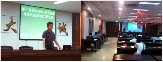 2012年5月8日因受福建泰寧縣中醫(yī)院的邀請,中國中西醫(yī)結(jié)合學(xué)會燒傷專業(yè)委員會常委兼秘書、《中國燒傷創(chuàng)瘍雜志》副總編輯、北京美寶燒傷創(chuàng)瘍研究所副所長、臨床部主任王洪生研究員趕往三明地區(qū)泰寧縣中醫(yī)院,晚上七點半在該院六樓會議室為該院的外科、糖尿病科、皮膚科等科室的醫(yī)生和部分護理部的人員共30余人進行了“再生復(fù)原療法在燒傷及難愈性創(chuàng)瘍創(chuàng)面治療新進展”的學(xué)術(shù)講座。