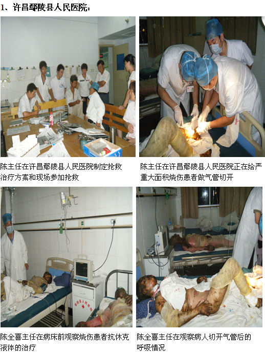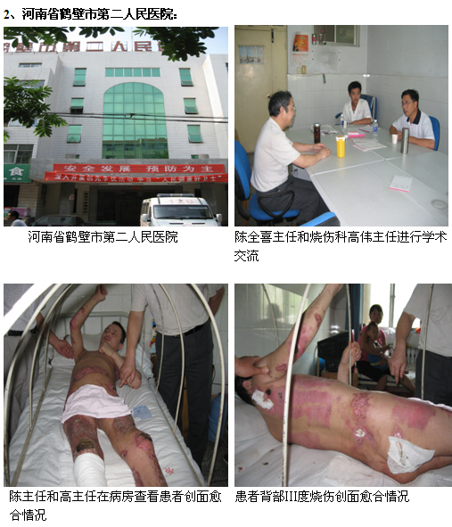 赤日炎炎似火燒,夏伏盛日溫度高。2010年7月11日至28日,中國中西醫(yī)結(jié)合燒傷專業(yè)委員會(huì)委員,全國特重病人搶救組專家,皮膚原位再生醫(yī)療技術(shù)推廣專家陳全喜主任別對(duì)河南省鄢陵縣人民醫(yī)院、河南省鶴壁市第二人民醫(yī)院、河南省滑縣第三人民醫(yī)院河南省許昌市地鐵骨科醫(yī)院的燒傷科進(jìn)行了會(huì)診,其中比較典型的病例如下:1、河南省鄢陵縣人民醫(yī)院2名火燒傷患者,燒傷面積均為96%TBSA以上的特重度燒傷患者;2、河南省鶴壁市第二人民醫(yī)院患者楊某,男,22歲,熱水泥燒傷,總燒傷面積為67%TBSA,均Ⅲ度燒傷創(chuàng)面;3、河南省滑縣第三人民醫(yī)院患者郭某,女,54歲,熱液燙傷,燒傷總面積為68%TBSA,雙下肢均為深Ⅲ度燒傷創(chuàng)面(肌腱外漏);4、河南省許昌市地鐵骨科醫(yī)院張某,男,38歲,外傷引發(fā)骨髓炎,住院已9個(gè)月,病情進(jìn)一步惡化。