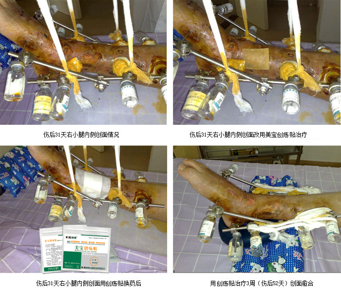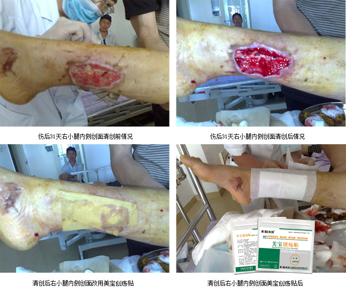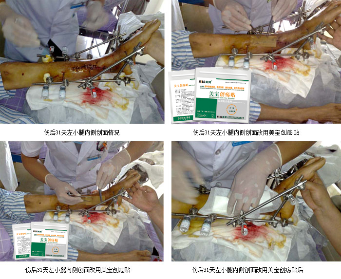 2008年6月12日以來,為使收治四川地震傷員醫(yī)院的醫(yī)護(hù)人員應(yīng)用規(guī)范的皮膚原位再生復(fù)原技術(shù)處理合并創(chuàng)傷潰瘍的傷員,避免患者的創(chuàng)傷肢體因潰瘍創(chuàng)面處理不當(dāng)遭受截肢之苦,根據(jù)皮膚原位再生復(fù)原技術(shù)發(fā)明人、中國中西醫(yī)結(jié)合學(xué)會(huì)常務(wù)理事、中國中西醫(yī)結(jié)合學(xué)會(huì)燒傷專業(yè)委員會(huì)名譽(yù)主任委員徐榮祥教授指示,中國中西醫(yī)結(jié)合學(xué)會(huì)燒傷專業(yè)委員會(huì)常委、北京美寶燒傷創(chuàng)瘍研究所副所長、臨床總部王洪生主任帶著徐榮祥教授為四川地震災(zāi)區(qū)合并有創(chuàng)傷潰瘍創(chuàng)面?zhèn)麊T愛心捐贈(zèng)的對(duì)皮膚、骨科潰瘍有獨(dú)特療效的美寶濕潤燒傷膏、美寶創(chuàng)瘍貼等外用藥物和醫(yī)用復(fù)合敷料先后3次到福建醫(yī)科大學(xué)附屬廈門第一醫(yī)院杏林分院集中收治四川地震災(zāi)區(qū)傷員的愛心病區(qū)查看傷員,對(duì)相關(guān)醫(yī)護(hù)人員進(jìn)行臨床傳、幫、帶,現(xiàn)場示范指導(dǎo)主管醫(yī)生為合并有創(chuàng)傷潰瘍創(chuàng)面的傷員用規(guī)范的皮膚原位再生復(fù)原技術(shù)為傷員潰瘍創(chuàng)面換藥,所有合并骨科及皮膚潰瘍的創(chuàng)面運(yùn)用皮膚原位再生復(fù)原技術(shù)并改用美寶創(chuàng)瘍貼或美寶濕潤燒傷膏油紗(MEBO油紗)換藥治療3周后,大部分潰瘍創(chuàng)面愈合或基本愈合,較大的骨外露創(chuàng)面也明顯好轉(zhuǎn),創(chuàng)面正在愈合中,從而避免了因創(chuàng)面處理不當(dāng)給患者造成截肢之痛。