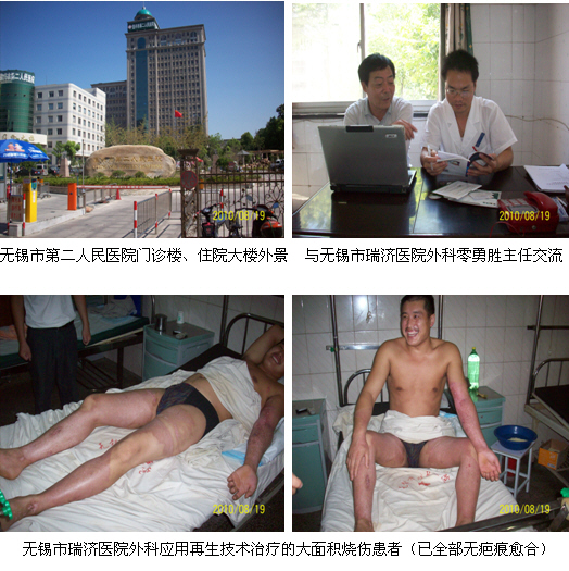 2010年8月16日~20日,中國(guó)中西醫(yī)結(jié)合學(xué)會(huì)燒傷專業(yè)委員會(huì)常委、北京美寶燒傷創(chuàng)瘍研究所臨床部燒傷創(chuàng)瘍專家杜福勤教授與周園園同志一同走訪了無(wú)錫市仁德醫(yī)院、宜興市屺亭醫(yī)院、宜興市第二人民醫(yī)院急診科、外一科、外二科、婦產(chǎn)科,無(wú)錫市瑞濟(jì)醫(yī)院(原宜興市煤礦醫(yī)院)、無(wú)錫市福利院。