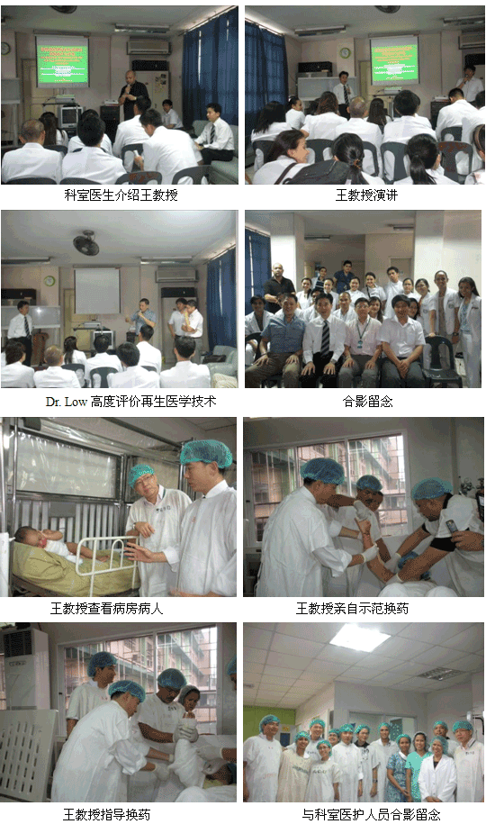 10月15日上午, 王教授來到Jose Reyes Memorial Medical Center醫(yī)療中心,與燒傷科醫(yī)生做了學(xué)術(shù)交流和討論,并做了關(guān)于美寶再生療法臨床應(yīng)用的最新報(bào)告。Dr. Low也對(duì)美寶再生醫(yī)學(xué)治療方法和其他醫(yī)生談了自己的感受。值得一提的是,燒傷科主管醫(yī)生Dr. Sy 將在11月15日到廣州參加為期2周關(guān)于深度和大面積燒傷的培訓(xùn),王教授表示一定會(huì)讓Dr.Sy不虛此行,系統(tǒng)的學(xué)習(xí)大面積和深度創(chuàng)面的治療方法。
