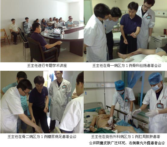 5月28日下午15時(shí),在賀州市中醫(yī)醫(yī)院門診樓6樓小會(huì)議室,王主任以“再生療法在難愈性創(chuàng)瘍創(chuàng)面治療新進(jìn)展”為題的進(jìn)行了學(xué)術(shù)講座。該醫(yī)院副院長兼骨科主任張偉宏親自召集該院外科系統(tǒng)的相關(guān)醫(yī)生參加學(xué)術(shù)交流,醫(yī)務(wù)科長植華主持了會(huì)議。王主任首先向大家介紹了人體再生復(fù)原科學(xué)是走在人類生命科學(xué)最前沿的研究成果,其技術(shù)核心是通過培養(yǎng)人體的體細(xì)胞轉(zhuǎn)變?yōu)楦杉?xì)胞,再生克隆新的組織器官,這也是大家在臨床應(yīng)用再生醫(yī)療技術(shù)治療燒傷時(shí)的技術(shù)核心;王主任還結(jié)合了大量的臨床病例圖片,主要針對(duì)各類難愈性創(chuàng)傷、潰瘍創(chuàng)面的規(guī)范化處理方法與技巧、注意事項(xiàng)等進(jìn)行了細(xì)致地講解,特別介紹了糖尿病足的臨床治療規(guī)范和要點(diǎn)。學(xué)術(shù)講座持續(xù)到當(dāng)日下午17時(shí)30分才結(jié)束,講座結(jié)束后,該院院長助理兼外一科主任李碧錦與骨科、燒傷外科相關(guān)的專家和主管醫(yī)生又邀請(qǐng)王主任深入到骨一、骨二病區(qū)和燒傷外科病區(qū)為糖尿病足、創(chuàng)瘍、肛周膿腫合并陰囊皮膚廣泛壞死右側(cè)睪丸外露、中毒性休克等難治性創(chuàng)面的患者進(jìn)行了會(huì)診。在會(huì)診時(shí),王主任親自為重病患者進(jìn)行換藥,并向醫(yī)務(wù)人員示范換藥的技巧講解換藥時(shí)的注意事項(xiàng),受到了大家的一致好評(píng)。
