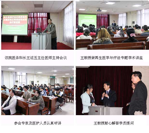 來自該院外科、骨科、內(nèi)科、護(hù)理等近100余醫(yī)護(hù)人員參加了此次培訓(xùn)。會(huì)議由醫(yī)務(wù)科王運(yùn)武科長(zhǎng)主持。在兩個(gè)多小時(shí)的講座中,王教授首先向與會(huì)醫(yī)護(hù)人員介紹了我國(guó)著名生命科學(xué)家、醫(yī)學(xué)家徐榮祥教授在人體再生復(fù)原科學(xué)領(lǐng)域取得的實(shí)驗(yàn)及臨床研究最新進(jìn)展,在2010年年底公布的“人體生命延續(xù)之謎(二)——線粒體主導(dǎo)日常生命”,破解了“精、氣、神、力”旺盛與人體啟動(dòng)了再生生命程序有關(guān),與細(xì)胞內(nèi)各主要細(xì)胞器功能的發(fā)揮有關(guān),并進(jìn)一步證實(shí)了一個(gè)生命體可以同時(shí)具有“基本生命”和“再生生命”等,然后王教授結(jié)合了大量的臨床病例資料,主要針對(duì)不同深度的燒傷創(chuàng)面及各類難愈性創(chuàng)傷、潰瘍創(chuàng)面的規(guī)范化處理方法與技巧、注意事項(xiàng)等進(jìn)行了細(xì)致地講解,生動(dòng)的講說和翔實(shí)的病例贏得了在場(chǎng)醫(yī)務(wù)人員的熱烈掌聲。會(huì)后王主任還就學(xué)員們提出的問題一一做了詳細(xì)地解答。會(huì)后各科領(lǐng)導(dǎo)表示將在臨床更加全面地推廣再生醫(yī)療技術(shù),為更多患者造福。