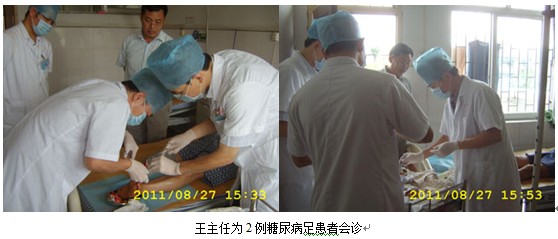 2011年8月27日下午三時,中國燒傷創(chuàng)瘍雜志副總編輯、中國中西醫(yī)結(jié)合學(xué)會燒傷專業(yè)委員會常委兼秘書、北京燒傷創(chuàng)瘍研究所副所長、臨床研究部主任王洪生研究員應(yīng)貴港市中醫(yī)院韋赤勇院長的邀請,在廣西田東縣人民醫(yī)院進行臨床學(xué)術(shù)交流后,王主任不辭辛苦從田東縣趕赴貴港市中醫(yī)醫(yī)院到為該院收治的2例糖尿病足病人會診,到達貴港市中醫(yī)醫(yī)院后,在韋赤勇院長陪同下,王主任深入該醫(yī)院創(chuàng)傷該科、燒傷創(chuàng)瘍科病區(qū),先后為2例糖尿病足患者會診,并親自為這2例病人做示范清創(chuàng)手術(shù),并在清創(chuàng)時講解糖尿病足創(chuàng)面處理要點,得到了該院韋院長、該科室主任楊柳明和主管醫(yī)生的高度認(rèn)同。會診結(jié)束后,韋赤勇院長又與王主任就該院燒傷創(chuàng)瘍??平诤椭虚L期發(fā)展規(guī)劃進行了廣泛而深入的交流和溝通,韋院長表示一定要讓我國著名生命科學(xué)家、醫(yī)學(xué)家、人體再生復(fù)原科學(xué)的創(chuàng)立者徐榮祥教授創(chuàng)立的再生復(fù)原療法在該醫(yī)院開花結(jié)果,通過再生復(fù)原療法對糖尿病足等難愈性創(chuàng)面獨特的療效將該醫(yī)院的創(chuàng)傷外科、燒傷創(chuàng)瘍科打造成貴港市的優(yōu)勢、特色專科,最后韋院長還表示將派一名醫(yī)生到國內(nèi)較為成熟的醫(yī)院去進修再生復(fù)原技術(shù),為打造難愈性創(chuàng)面優(yōu)勢??票M快培養(yǎng)人才。
