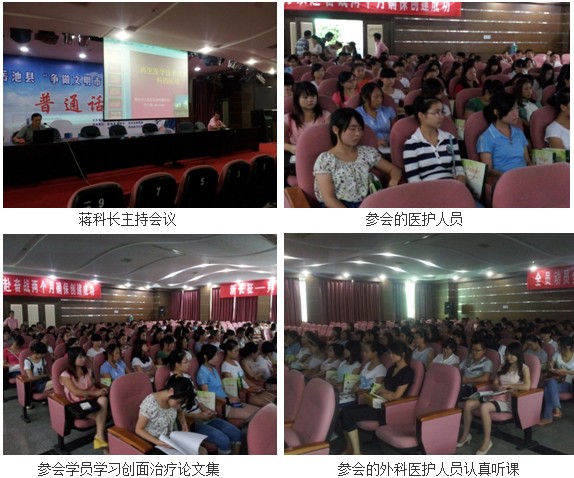 學(xué)術(shù)會議由岳池縣人民醫(yī)院科技科蔣科長主持。參加會議的醫(yī)護(hù)人員的來自不同的科室,包括外一科、外二科還有婦產(chǎn)科及內(nèi)科等,總計約100人左右。首先付主任講解了原位再生醫(yī)療技術(shù)的原理,然后展示了原位再生醫(yī)療技術(shù)治療的成果,當(dāng)同學(xué)們看到再生技術(shù)神奇治療效果的圖片時都報以陣陣掌聲,培訓(xùn)班受到了醫(yī)護(hù)人員們的熱烈歡迎。會后大家都感覺受益匪淺,相信此次學(xué)習(xí)班的舉行一定會惠及岳池縣的萬千民眾。