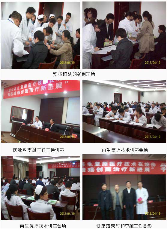 2012年4月19日中國中西醫(yī)結(jié)合學(xué)會燒傷專業(yè)委員會委員、北京美寶燒傷創(chuàng)瘍研究所臨床部研究員、燒傷創(chuàng)瘍專家杜福勤主任和學(xué)會駐江蘇省辦事處劉恒主任應(yīng)姜堰市中醫(yī)院醫(yī)教科李鋮科長之邀,為姜堰市中醫(yī)院作“再生復(fù)原技術(shù)在燒傷創(chuàng)傷潰瘍創(chuàng)面臨床治療新進(jìn)展”講座,杜主任利用大量臨床實(shí)踐資料介紹了再生復(fù)原科學(xué)創(chuàng)立者,再生復(fù)原技術(shù)發(fā)明人徐榮祥教授研究創(chuàng)立和實(shí)踐的歷程,介紹了國內(nèi)外臨床實(shí)踐、推廣情況,重點(diǎn)講解了再生復(fù)原技術(shù)在燒傷創(chuàng)傷潰瘍創(chuàng)面的清創(chuàng)換藥技術(shù),介紹了再生復(fù)原技術(shù)專用產(chǎn)品MEBO燒傷膏、美寶創(chuàng)瘍貼、美寶疤痕軟膏的功能,臨床療效、臨床效果、注意事項(xiàng)及不良反應(yīng)。同時介紹了創(chuàng)瘍貼的產(chǎn)品特點(diǎn);1、特有的框架劑型,2、多重的生物功能,3、良好的止痛作用,4、可靠的臨床效果,5、獨(dú)有的專利產(chǎn)品。接著又介紹了美寶疤痕軟膏和微波超聲透入儀治療疤痕的資料,深受入會醫(yī)護(hù)人員的歡迎,起到了深入推廣再生復(fù)原技術(shù)地目的,造福姜堰市燒傷創(chuàng)瘍患者,福祉一方百姓。