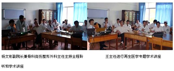 2011年5月6日上午9:30分應(yīng)來賓市人民醫(yī)院邀請,中國中西醫(yī)結(jié)合學(xué)會燒傷專業(yè)委員會常委、中國燒傷創(chuàng)瘍雜志社副總編輯、北京美寶燒傷創(chuàng)瘍研究所副所長,臨床研究部主任王洪生研究員到該醫(yī)院進行“再生復(fù)原療法在燒傷及難愈性創(chuàng)瘍創(chuàng)面治療新進展”專題學(xué)術(shù)講座。