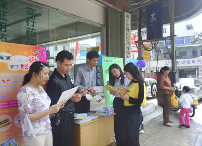 2004年10月23日至24日,廣東片區(qū)在惠州市健民醫(yī)藥連鎖有限公司總店舉行“美寶濃情至誠獻禮,美寶產(chǎn)品新鮮享受”活動。