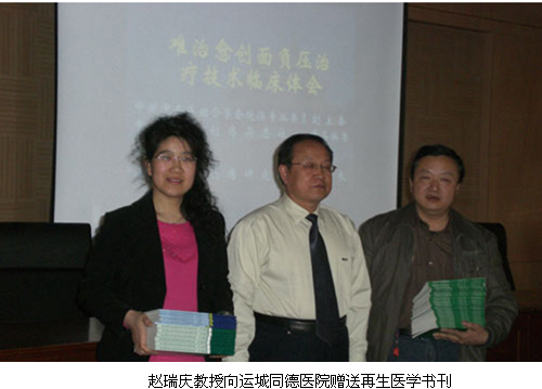 另外,趙瑞慶教授先后在沒有應用過原位再生醫(yī)療技術的永濟市人民醫(yī)院、聞喜縣創(chuàng)傷醫(yī)院、運城皮膚病醫(yī)院、運城市同德糖尿病醫(yī)院進行了再生醫(yī)療技術的臨床應用培訓共八期,培訓人員達394人,贈送再生醫(yī)學資料達400余冊,受到了當?shù)匦l(wèi)生局領導、縣醫(yī)院的高度稱贊。