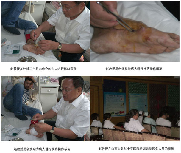 簡報(bào)二:9月4日,趙教授在山西太谷紅十字正骨醫(yī)院培訓(xùn)該院醫(yī)務(wù)人員加強(qiáng)再生醫(yī)學(xué)技術(shù)在多學(xué)科的臨床應(yīng)用。培訓(xùn)結(jié)束后,到病房查房指導(dǎo),處理了三個(gè)月未愈合的傷口。