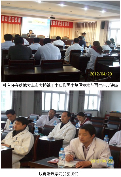 2012年4月20日中國中西醫(yī)結(jié)合學(xué)會燒傷專業(yè)委員會委員、北京美寶燒傷創(chuàng)瘍研究所臨床部主任、燒傷創(chuàng)瘍專家杜福勤與江蘇省區(qū)劉恒主任驅(qū)車100余公里從姜堰趕赴鹽城大豐市大橋鎮(zhèn)衛(wèi)生院,舉辦再生復(fù)原技術(shù)學(xué)術(shù)講座,杜主任以“皮膚原位再生復(fù)原技術(shù)與再生產(chǎn)品”為題為大豐市大橋鎮(zhèn)衛(wèi)生院全體職工舉辦了再生復(fù)原技術(shù)講座,該醫(yī)院楊院長參加了再生復(fù)原技術(shù)講座學(xué)習(xí),杜主任通俗易懂的進(jìn)行了演講,講解了再生復(fù)原技術(shù)的基礎(chǔ)理論和美寶創(chuàng)瘍貼與美寶疤痕軟膏的臨床應(yīng)用方法、臨床功能、臨床療效及愈后效果。介紹了美寶創(chuàng)瘍貼的產(chǎn)品特點(diǎn);臨床注意事項和不良反應(yīng)。深受參加學(xué)習(xí)的醫(yī)護(hù)人員歡迎,為深入基層推廣奠定了良好基礎(chǔ),達(dá)到了基層醫(yī)療單位深入推廣地目的。