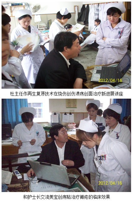 2012年4月16日中國中西醫(yī)結(jié)合學(xué)會燒傷專業(yè)委員會委員、北京美寶燒傷創(chuàng)瘍研究所臨床部研究員、燒傷創(chuàng)瘍專家杜福勤主任和駐黃山市陳義勝同志為歙縣人民醫(yī)院外科、骨科醫(yī)護(hù)人員作再生復(fù)原技術(shù)講座,受到參加學(xué)習(xí)的醫(yī)護(hù)人員歡迎,達(dá)到了推廣再生復(fù)原技術(shù)地目的。