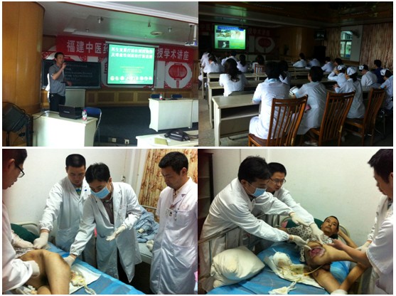 結(jié)束了泰寧兩家醫(yī)院的講座,2012年5月10日中國中西醫(yī)結(jié)合學(xué)會燒傷專業(yè)委員會常委兼秘書、中國燒傷創(chuàng)瘍雜志副總編輯、北京美寶燒傷創(chuàng)瘍研究所副所長、臨床部主任王洪生研究員馬不停蹄地趕往福建省將樂縣,下午三點半在該將樂縣中醫(yī)院六樓會議室為該院的外科、骨科、五官科、皮膚科等科室的醫(yī)生和部分護理  部的人員共50余人進行了“再生復(fù)原療法在燒傷及難愈性創(chuàng)瘍創(chuàng)面治療新進展”的學(xué)術(shù)講座。