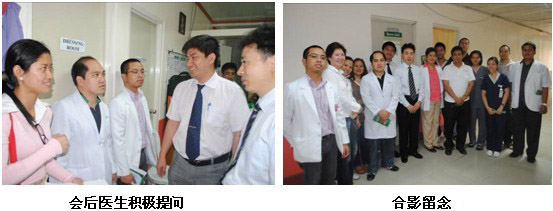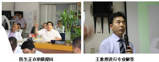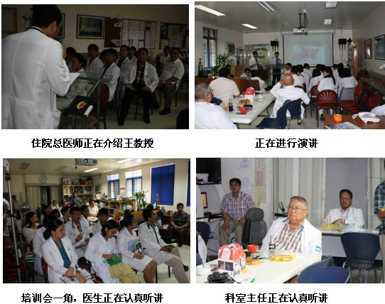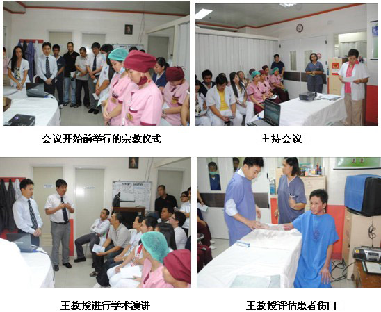 隨后來到該院普外科會議室,對普外科醫(yī)護(hù)人員進(jìn)行再生醫(yī)學(xué)技術(shù)在慢性創(chuàng)瘍病例上的展示及治療藥店。各種慢性創(chuàng)面包括糖尿病足,褥瘡,動、靜脈潰瘍。共計(jì)30名外科及燒傷科醫(yī)生參加。該院院長也來到會議室,與王主任進(jìn)行交流,并參加了整個培訓(xùn)來充分了解再生醫(yī)學(xué)技術(shù)。有一名醫(yī)生Pradez Sapkofa,他是菲律賓人,但曾經(jīng)在山東學(xué)醫(yī)6年,能熟練使用中文。會后,他用中文親切地稱王洪生教授為王老師,并緊握王教授的雙手說真是神奇的技術(shù)并為中國感到驕傲和自豪。