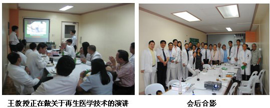 3. 4月6日上午10點(diǎn)來到UST  (University of Santo Tomas Hospital)醫(yī)院 (http://www.usthospital.com.ph/aboutusth/companyprofile.php)。該醫(yī)院是一家私立醫(yī)院,沒有燒傷科,亦沒有使用過再生醫(yī)學(xué)技術(shù)(MEBT/MEBO),此次是第一次進(jìn)行醫(yī)療開發(fā)。20名外科大夫參與培訓(xùn)會。對再生醫(yī)療技術(shù)所達(dá)到的臨床治療效果非常感興趣。并表示會嘗試使用此技術(shù)治療各種慢性潰瘍的病人。整個培訓(xùn)會持續(xù)半個小時。