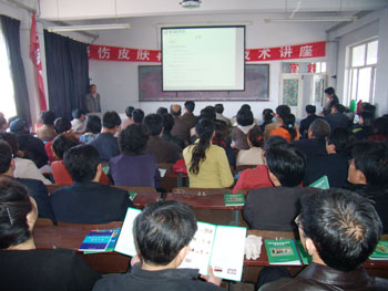 經(jīng)過近幾年來的推廣普及維護,張家口市區(qū)縣內(nèi)各級醫(yī)療單位,不同程度的應(yīng)用著燒傷皮膚原位再生醫(yī)療技術(shù),從而滿足了部分燒傷患者的就醫(yī)需求,解決了醫(yī)生在治療患者中遇到的難題。張家口是一個地域遼闊、人群居住分散、交通欠發(fā)達的地區(qū),燒傷皮膚原位再生醫(yī)療技術(shù)推廣起來有一定的難度。今年春季以來 ,張家口市衛(wèi)生局科教科在熟知該項技術(shù)是“國家十年百項科技成果”且已被國家列為“星火計劃”推廣項目之后,為了更大范圍、更加深入的向基層推廣,更好的讓醫(yī)務(wù)人員解決基層燒傷創(chuàng)瘍患者的痛苦,對燒傷皮膚原位再生醫(yī)療技術(shù)的推廣給予了高度重視,并以書面文件要求各縣級衛(wèi)生局給予支持。中國中西醫(yī)結(jié)合學(xué)會燒傷專業(yè)委員會于四月二十三和二十五日,分別在涿鹿縣和陽原縣,舉辦了由縣內(nèi)各級醫(yī)療單位相關(guān)科室醫(yī)務(wù)人員參加的培訓(xùn)班,兩個班的聽課人數(shù)分別為135人和105人。在培訓(xùn)班上,由醫(yī)療部樊兆宗主任,重點講解了燒傷皮膚原位再生醫(yī)療技術(shù)的規(guī)范應(yīng)用,以及再生療法在多學(xué)科的應(yīng)用和進展。大家對講座非常感興趣,學(xué)習(xí)熱情很高,會后又進行了互動和交流,加強了縣級醫(yī)院和鄉(xiāng)村醫(yī)生的合作,起到很好的技術(shù)開發(fā)推廣和鞏固的作用。與會人員對“中國中西醫(yī)結(jié)合學(xué)會燒傷專業(yè)委員會”給基層醫(yī)院、衛(wèi)生院以及診所送來這樣好的技術(shù),協(xié)助他們解決臨床上的難題,一再表示感謝。通過這兩次辦班我們也深深體會到:“燒傷皮膚再生醫(yī)療技術(shù)”是深受基層醫(yī)療單位和廣大患者歡迎的好技術(shù),我們一定要再接再厲。與此同時把“人體再生養(yǎng)生保健”和“速愈貼”介紹給大家。把燒傷皮膚再生醫(yī)療技術(shù)推廣工作,做的更好!