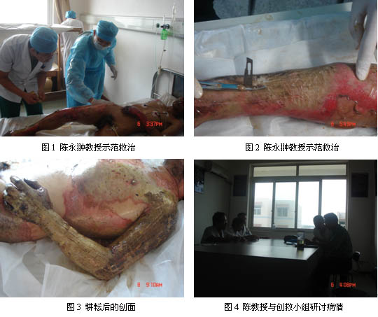 2007年6月5日貴州省安順市基地醫(yī)院收治了四名大面積重度燒傷病人,由于病情嚴(yán)重,情況緊急,該院立即通知了中國中西醫(yī)結(jié)合學(xué)會燒傷專業(yè)委員會陳永翀教授,陳教授聞之情況后,于第二天就從北京趕到了該院,到達該院后陳教授立即投入到了搶救的工作中去了。