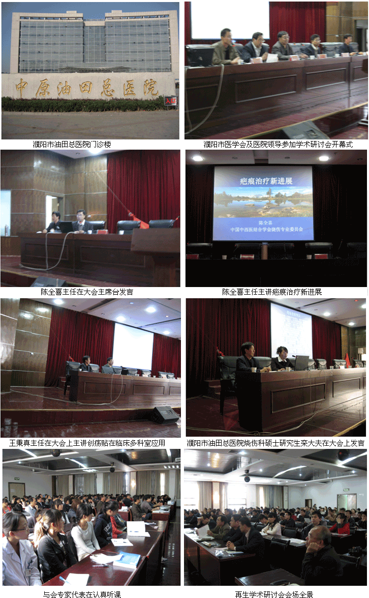 2010年10月16日,我國著名生命科學(xué)家徐榮祥教授創(chuàng)立的再生醫(yī)療新技術(shù)學(xué)術(shù)研討會在河南省濮陽市油田總醫(yī)院勝利召開,上午8點30分,濮陽市油田總醫(yī)院醫(yī)療處處長耿長雨、濮陽市油田總醫(yī)院院長楊立、市醫(yī)學(xué)會秘書長王長太,中國創(chuàng)瘍科技研究所陳全喜教授、河南省中西醫(yī)結(jié)合學(xué)會燒傷專業(yè)委員會副主任委員王秉真教授、河南鄭大一附院崔正軍教授、中華醫(yī)學(xué)會河南燒傷專業(yè)委員會常委、濮陽市油田燒傷科主任醫(yī)師張巨祥等來自河南的濮陽、安陽、焦作、等地區(qū)和中原油田十一所醫(yī)院的專家、教授及專業(yè)人員共176人參加了學(xué)術(shù)會開幕式,會議由張巨祥醫(yī)師。