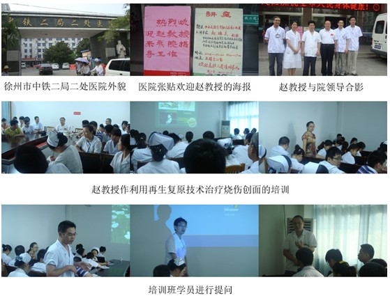 2012年7月下旬應(yīng)蘇北南京消防燒傷醫(yī)院、徐州老年病醫(yī)院、邳州中鐵二局二處醫(yī)院的邀請,北京燒傷創(chuàng)瘍研究所趙瑞慶教授在蘇北再生復(fù)原技術(shù)推廣辦事處主任劉恒以及周銀梅的陪同下,分別在蘇北地區(qū)舉辦院級培訓(xùn)班兩期,科內(nèi)培訓(xùn)班一期,受到了當(dāng)?shù)蒯t(yī)務(wù)人員的一致好評。