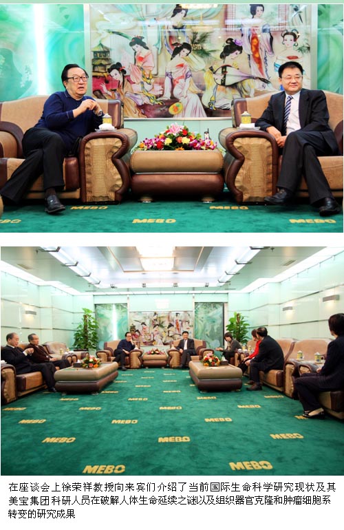 虎尾之年玉兔迎春,在世界生命科學(xué)界熱論人體生命再生延續(xù)秘密的濃厚學(xué)術(shù)氣氛中,應(yīng)美寶國(guó)際集團(tuán)董事局主席徐榮祥教授的邀請(qǐng),中國(guó)醫(yī)師協(xié)會(huì)常務(wù)副會(huì)長(zhǎng)兼秘書(shū)長(zhǎng)楊鏡教授、副會(huì)長(zhǎng)蔡忠軍教授、陸君副秘書(shū)長(zhǎng)、編輯部肖先福主任、辦公室袁亞明主任等一行5人于12月23日蒞臨美寶集團(tuán)總部參觀指導(dǎo)。