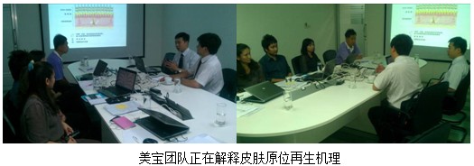 6月18日上午9點,美寶團隊一行來到當(dāng)?shù)睾献骰锇镈KSH總部,為4名高層人員介紹再生醫(yī)療技術(shù)皮膚原位再生機理。仔細的講解和PPT的內(nèi)容讓四名新上任的高層對美寶科學(xué)機理有了大致了解,他們紛紛點頭表示會繼續(xù)潛心研讀相關(guān)再生科學(xué)論文和著作,為再生技術(shù)在泰國的普及做好基礎(chǔ)。