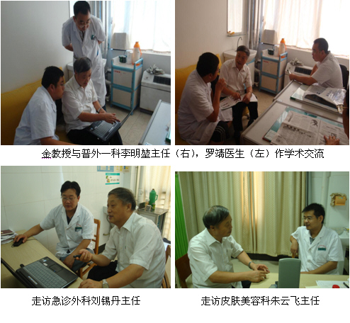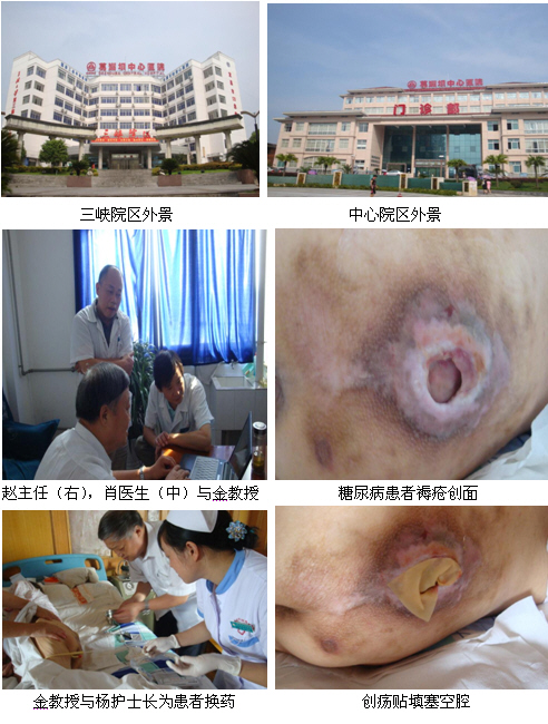 8月11日至8月13日,中國中西醫(yī)結(jié)合學(xué)會燒傷專業(yè)委員會金黨軍教授走訪了該醫(yī)院三峽院區(qū)和中心院區(qū)的部分科室。金教授在走訪期間分別與三峽院區(qū)外科趙延春主任、楊護士長,中心院區(qū)普外一科李明堃主任,急診外科劉錫丹主任和皮膚美容科朱云飛主任進行了技術(shù)交流。趙延春主任在臨床一直推廣應(yīng)用濕潤燒傷膏和濕性醫(yī)療技術(shù)為大面積燒傷患者治療,非??隙ㄆ渥吭降呐R床療效。在金教授拜訪趙延春主任時,他正為一位因腹腔鏡手術(shù)插管形成的洞傷口患者應(yīng)用美寶創(chuàng)瘍貼換藥。在金黨軍教授向趙主任和科室骨干肖醫(yī)生介紹了目前再生醫(yī)療技術(shù)臨床實踐新進展后,他們表示通過對皮膚再生醫(yī)療技術(shù)對創(chuàng)傷、潰瘍創(chuàng)面治療良好效果的考察,他們正在構(gòu)思創(chuàng)瘍特色專業(yè)科室的建立。