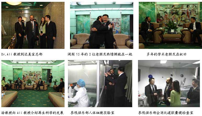 2009年11月12日上午10時(shí),Dr.Ali教授應(yīng)邀來(lái)到了人體生命再生科學(xué)發(fā)源地——美寶國(guó)際集團(tuán)總部參觀考察,徐榮祥教授在貴賓室熱情接見(jiàn)了這位多年的學(xué)術(shù)老朋友。Dr.Ali教授是再生醫(yī)學(xué)的忠誠(chéng)追隨者和實(shí)踐家,他自1996年與燒傷再生醫(yī)學(xué)技術(shù)創(chuàng)始人徐榮祥教授結(jié)識(shí),開(kāi)始致力于燒傷再生醫(yī)療技術(shù)的臨床研究與應(yīng)用,成功運(yùn)用該技術(shù)救治了大量中小面積的燒傷患者和一些嚴(yán)重的創(chuàng)瘍患者,取得了良好的治療效果,先后在國(guó)際專(zhuān)業(yè)期刊上先后發(fā)表了多篇有關(guān)燒傷再生醫(yī)學(xué)的論文,在燒傷再生醫(yī)學(xué)領(lǐng)域具有較深的造詣,在阿聯(lián)酋和中東具有較高的學(xué)術(shù)地位和影響力。會(huì)面期間,徐教授與Dr. Ali教授一起追憶了燒傷皮膚再生研究的發(fā)展歷史,徐教授向其介紹了生命再生醫(yī)學(xué)與科學(xué)近年來(lái)在燒傷皮膚再生以及整個(gè)人體再生復(fù)原科學(xué)領(lǐng)域的喜人進(jìn)展與成就,共同暢談了再生醫(yī)學(xué)與科學(xué)的未來(lái)發(fā)展,在科學(xué)和學(xué)術(shù)的高度上達(dá)成了共識(shí)。會(huì)談結(jié)束后,在徐教授的親自陪同下,Dr. Ali教授饒有興致地參觀了美寶人體再生復(fù)原俱樂(lè)部、人體細(xì)胞研究所、全消化道膠囊鏡等。中國(guó)燒傷創(chuàng)瘍科技中心臨床部陳永翀教授在美寶集團(tuán)總部多功能廳用多媒體生動(dòng)地向Dr. Ali教授展示了再生醫(yī)學(xué)在胃腸組織器官再生、斷指再生和治療癌癥方面取得的新進(jìn)展。整個(gè)訪問(wèn)、參觀過(guò)程中,Dr. Ali教授對(duì)再生醫(yī)學(xué)、科學(xué)取得的新成就表示出濃厚的興趣和完全的折服,并不止一次感嘆:從與徐教授結(jié)識(shí)的第一天起,對(duì)徐教授提出的關(guān)于皮膚再生、以及其他方面的新觀念、新理論和臨床結(jié)果都堅(jiān)信不疑,盡管當(dāng)時(shí)一些關(guān)于機(jī)理的問(wèn)題還沒(méi)有定論,但他始終相信那只是時(shí)間的問(wèn)題。今天能夠見(jiàn)到徐教授,他不僅得到了以前遺留問(wèn)題的最終答案,并看到了再生科學(xué)的飛速發(fā)展,更加堅(jiān)定了他為該科學(xué)獻(xiàn)身的決心。期間,國(guó)際部孫霞總經(jīng)理也熱情接見(jiàn)了Dr.Ali教授,并就下一步阿聯(lián)酋及中東地區(qū)的再生醫(yī)學(xué)科學(xué)的學(xué)術(shù)發(fā)展與醫(yī)療開(kāi)發(fā)工作進(jìn)行了認(rèn)真的商談,具體討論了下階段的發(fā)展計(jì)劃。