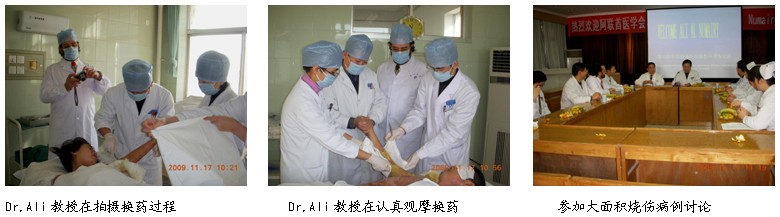 2009年11月16日下午,Dr. Ali結(jié)束了2009年北京國(guó)際微創(chuàng)外科大會(huì)的學(xué)術(shù)演講后,便啟程趕到了山東省泰安市,開(kāi)始了對(duì)泰山醫(yī)學(xué)院附屬醫(yī)院的參觀、考察和學(xué)術(shù)交流之旅。泰山醫(yī)學(xué)院附屬醫(yī)院對(duì)Dr.Ali的到來(lái)也非常重視,業(yè)務(wù)院長(zhǎng)胡建功教授親自組織安排了這次國(guó)際學(xué)術(shù)交流活動(dòng),醫(yī)務(wù)處的楊曉雯處長(zhǎng)則認(rèn)真落實(shí)了各項(xiàng)具體的組織、策劃、接待、協(xié)調(diào)以及做歡迎橫幅、發(fā)通知等工作,而燒傷科主任徐西勝、王廣順教授和護(hù)士長(zhǎng)公怌欣則動(dòng)員全科醫(yī)護(hù)人員積極行動(dòng)起來(lái),做好迎接國(guó)外專(zhuān)家來(lái)參觀考察和學(xué)術(shù)交流的各項(xiàng)準(zhǔn)備工作,燒傷科里洋溢著節(jié)日氛圍。