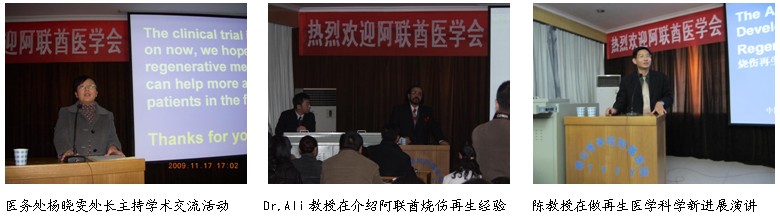 2009年11月11日至11月18日,阿拉伯聯(lián)合酋長(zhǎng)國(guó)(阿聯(lián)酋)醫(yī)師學(xué)會(huì)主席、整形外科學(xué)會(huì)主席、迪拜醫(yī)學(xué)院碩士研究生導(dǎo)師Dr. Ali Al Numairy 教授應(yīng)第37屆北京國(guó)際微創(chuàng)外科大會(huì)和中國(guó)中西醫(yī)結(jié)合學(xué)會(huì)燒傷專(zhuān)業(yè)委員會(huì)的邀請(qǐng),來(lái)到中國(guó)進(jìn)行為期一周的再生醫(yī)學(xué)學(xué)術(shù)演講、經(jīng)驗(yàn)交流和考察、學(xué)習(xí)大面積深度燒傷再生治療的學(xué)術(shù)之旅。在短短的一周時(shí)間里,Dr. Ali Al Numairy有幸再次見(jiàn)到了中國(guó)青年科學(xué)家、燒傷再生醫(yī)學(xué)與人體生命再生科學(xué)的創(chuàng)立人徐榮祥教授,雙方進(jìn)行了廣泛的再生科學(xué)領(lǐng)域的交流,還出席了在北京協(xié)和醫(yī)院舉辦的2009年第37屆北京國(guó)際微創(chuàng)外科大會(huì),并在會(huì)議上進(jìn)行了燒傷濕潤(rùn)暴露療法專(zhuān)題演講,引起了全場(chǎng)轟動(dòng)。隨后,Dr. Ali Al Numairy教授又趕到中國(guó)燒傷創(chuàng)瘍泰山醫(yī)院——泰山醫(yī)學(xué)院附屬醫(yī)院燒傷科,參觀考察大面積深度燒傷的皮膚再生治療技術(shù)并進(jìn)行了深入的學(xué)術(shù)交流,整個(gè)行程內(nèi)容豐富、精彩紛呈、收獲頗豐!