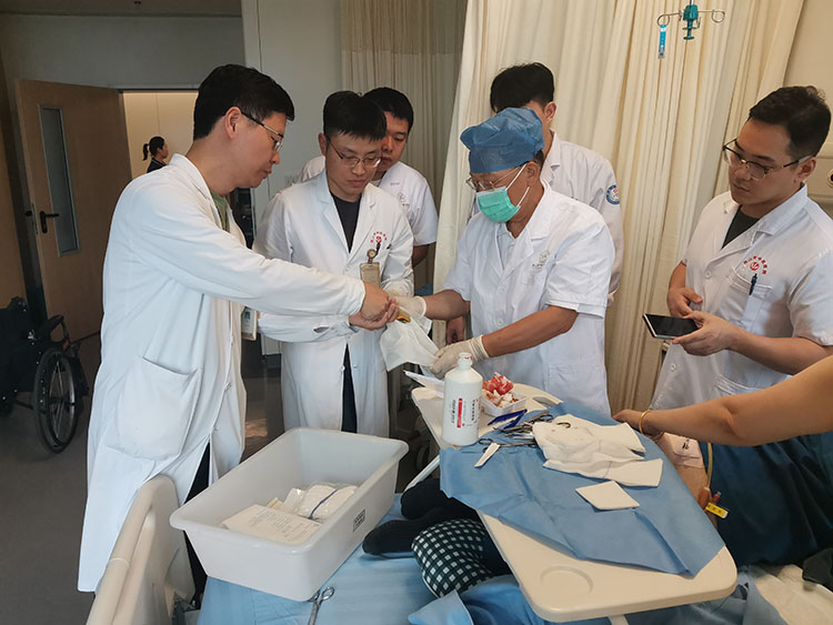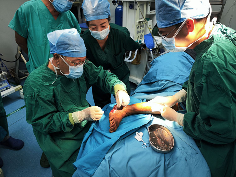 9月11日,應(yīng)廊坊市安次區(qū)醫(yī)院外科邀請(qǐng),《中國燒傷創(chuàng)瘍雜志》常務(wù)編委、燒傷創(chuàng)瘍?cè)偕t(yī)療技術(shù)臨床專家趙瑞慶,為一例四級(jí)糖尿病足合并下肢血管閉塞患者行皮簇種植術(shù),術(shù)中順利出血不多,病人安返病區(qū),得到了患者和主治醫(yī)生的感謝和贊揚(yáng)。