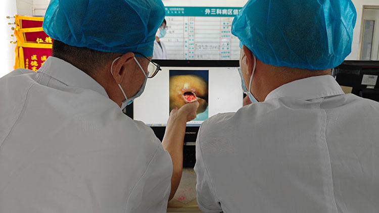 2025年9月4日,《中國燒傷創(chuàng)瘍雜志》編委、燒傷創(chuàng)瘍?cè)偕t(yī)療技術(shù)臨床專家張強(qiáng),應(yīng)邀到訪湖北宜昌秭歸縣人民醫(yī)院骨外二科,會(huì)診兩例燒傷患者。張主任親自示范黑痂清創(chuàng)及再生技術(shù)規(guī)范換藥,同時(shí)建議了后續(xù)創(chuàng)面手術(shù)治療方案,得到郝主任,鄭醫(yī)生等醫(yī)護(hù)人員高度認(rèn)可!