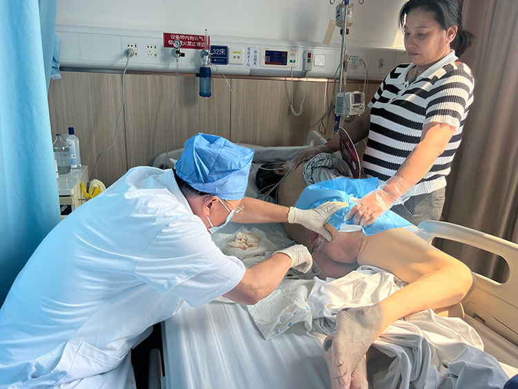 9月5日,中國中西醫(yī)結(jié)合學(xué)會(huì)燒傷專業(yè)委員會(huì)常務(wù)委員、《中國燒傷創(chuàng)瘍雜志》副總編輯王洪生主任到廣東揭陽惠來縣人民醫(yī)院分別會(huì)診了糖足,壓瘡,燒傷病人合計(jì)8位患者,并親自示范規(guī)范換藥并詳細(xì)講解下一步治療方案和注意事項(xiàng)。