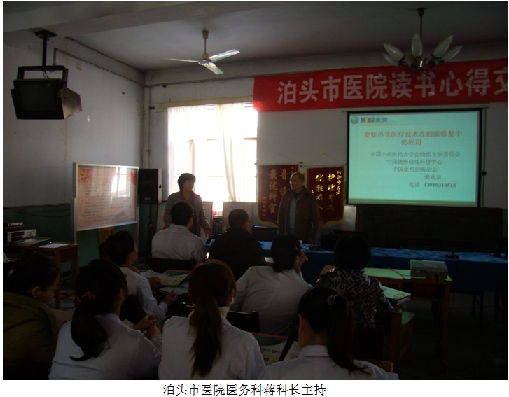 任丘市人民醫(yī)院是一所二級(jí)甲等綜合性醫(yī)院;泊頭市人民醫(yī)院是贊皇縣唯一醫(yī)療、教學(xué)、科研、急救、康復(fù)為一體的綜合性二級(jí)甲等醫(yī)院,兩院均為當(dāng)?shù)睾诵尼t(yī)院,承擔(dān)著大量重要的醫(yī)療救治工作。此次培訓(xùn),樊兆宗教授主講內(nèi)容為再生醫(yī)療技術(shù)在多學(xué)科的應(yīng)用,樊教授通過典型臨床病例的治療介紹了再生醫(yī)療技術(shù)在外科創(chuàng)面、骨外露、皮膚潰瘍(褥瘡)、糖尿病足、肛腸換藥等多學(xué)科的臨床應(yīng)用。