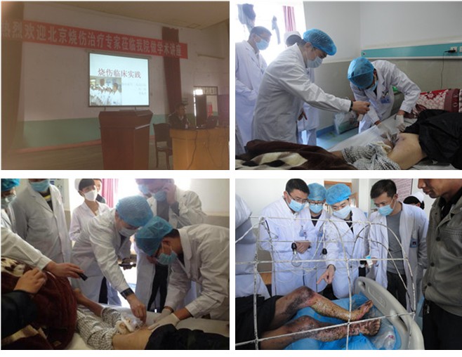 在保山期間,王主任還應(yīng)邀于2014年2月21日上午到保山市第二人民醫(yī)院燒傷創(chuàng)瘍及普外神經(jīng)外科對(duì)1例病史20余年的雙臀部滑囊性壓瘡、1例深度燒傷患者、和1例小兒包皮環(huán)切術(shù)后皮膚環(huán)周壞死用皮膚再生醫(yī)療技術(shù)已治愈隨訪的患兒進(jìn)行了會(huì)診及康復(fù)期的處理方法的指導(dǎo)。