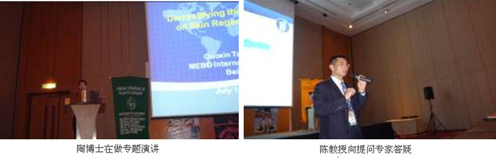 在隨后進行的美寶學(xué)術(shù)的專場演講中,陳教授與陶博士分別向與會專家講解了再生醫(yī)學(xué)在大量兒童燒傷治療中的應(yīng)用以及燒傷再生醫(yī)學(xué)中MEBT/MEBO的作用原理。與會人員既震驚于美寶燒傷再生醫(yī)學(xué)的驚人臨床效果,又基本理解了其背后的科學(xué)道理,稱他們現(xiàn)在終于明白了美寶不僅僅是一個治療燒傷的藥膏而已,而更有其深刻的科學(xué)內(nèi)涵。他們紛紛就其神奇療效發(fā)表意見和咨詢。