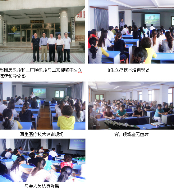 2010年9月11日,中國中西醫(yī)結(jié)合學(xué)會(huì)燒傷專業(yè)委員會(huì)副主任趙瑞慶教授,燒傷專業(yè)委員會(huì)常委王廣順教授應(yīng)山東聊城中醫(yī)醫(yī)院邀請,在聊城辦事處許嫻同志的陪同下,于當(dāng)日下午15:00至18:00在該院多功能會(huì)議室對該院的62位醫(yī)護(hù)人員進(jìn)行了燒傷再生醫(yī)學(xué)技術(shù)的院內(nèi)培訓(xùn),培訓(xùn)內(nèi)容包括:(1)再生醫(yī)學(xué)22年的發(fā)展歷史;(2)原位干細(xì)胞再生修復(fù)燒傷創(chuàng)面的機(jī)理;(3)燒傷再生醫(yī)學(xué)創(chuàng)面處理原則、以及規(guī)范操作方法;(4)早期使用疤痕軟膏治療疤痕的臨床效果;(5) 再生醫(yī)學(xué)技術(shù)在多學(xué)科應(yīng)用的情況,同時(shí)利用大量的病例圖片向大家介紹了創(chuàng)瘍貼治療燒傷、皮膚創(chuàng)傷和潰瘍創(chuàng)面的良好治療效果,再生醫(yī)療技術(shù)已實(shí)現(xiàn)了全部和部分器官的原位再生。通過三個(gè)小時(shí)講座使參會(huì)的醫(yī)務(wù)人員受益匪淺,該院姚常偉院長表示要盡快引進(jìn)此項(xiàng)技術(shù),在醫(yī)院全面開展治療燒傷、皮膚創(chuàng)傷、潰瘍疾病,造福于山東聊城的廣大人民群眾。會(huì)后趙瑞慶教授和姚常偉院長給洽談了有關(guān)進(jìn)一步引進(jìn)此項(xiàng)技術(shù)的其它事宜。