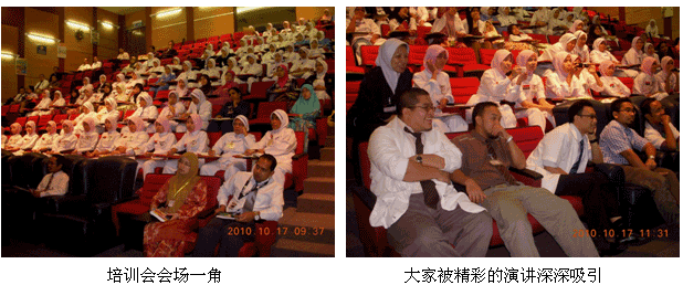 6、10月17日上午9時,再生醫(yī)學(xué)州級培訓(xùn)班------Kuala Terenggganu State(夸拉. 登家樓州)醫(yī)學(xué)繼續(xù)教育項目在Hospital Sultanah Nur Zahirah (登家樓州中央醫(yī)院,1100病床)的禮堂勝利召開。來自全州各城市的10多家醫(yī)院的100多名醫(yī)護(hù)人員參加了培訓(xùn)會。培訓(xùn)會舉行了簡短的開幕儀式,該院醫(yī)教科的Dr. Azliza主持開幕式,創(chuàng)傷骨主任Dr. Ahmad Tajuddin致歡迎詞并向大家介紹主講專家。開幕儀式結(jié)束后,陳永翀教授應(yīng)邀以“燒傷再生醫(yī)學(xué)與療法在燒傷、創(chuàng)瘍的臨床規(guī)范應(yīng)用”為題,對前來參會的醫(yī)護(hù)人員進(jìn)行了較系統(tǒng)的再生醫(yī)學(xué)知識培訓(xùn),陳教授演講的內(nèi)容新穎、通俗易懂、有條理,很受大家的歡迎。接著,該院的骨科醫(yī)師Dr. Colin以“燒傷再生醫(yī)學(xué)技術(shù)在我院的臨床應(yīng)用報告”為題,向參會的臨床醫(yī)護(hù)人員介紹了骨科引進(jìn)和應(yīng)用再生醫(yī)學(xué)技術(shù)1年來所治療的37例創(chuàng)瘍患者所取得的神奇效果和體會,大家對這次的再生醫(yī)學(xué)專題培訓(xùn)會的培訓(xùn)內(nèi)容感到很滿意。