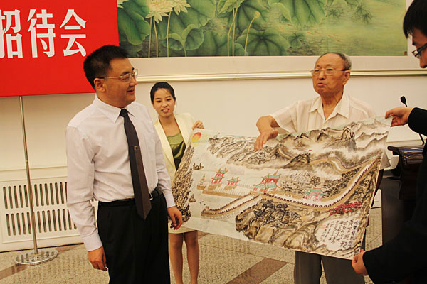 令人感動的場面出現(xiàn)了,來自山東威海、86歲的王瑞榮老先生也走到了前臺,他曾經(jīng)很不幸,罹患了肺癌腺癌(臨終晚期),但是他又非常幸運,遇到了徐榮祥教授,加入了再生抗癌研究計劃,成為人體再生復(fù)原科學(xué)的受益者,讓他以86歲的高齡獲得了重生。老人現(xiàn)在精神矍鑠,底氣十足,步履穩(wěn)健,自我感覺越活越年輕,面前的這位充滿活力的老人,難以想象這是個癌癥患者,甚至很難相信他已是耄耋之年。為了表達他的感激之情,特地為徐教授送上他自己作的畫,對于樸實的老人,感激語言已經(jīng)難以表達他的內(nèi)心感受,唯希望通過畫來表達他的心聲。