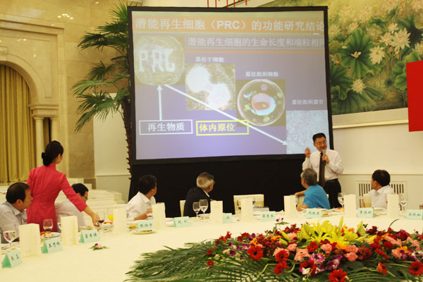 2012年8月16日晚,“人體再生復(fù)原科學(xué)答謝招待會”晚宴在人民大會堂澳門廳隆重舉行,拉開了人體再生復(fù)原科學(xué)誕生十周年的慶典盛幕,不僅通過“人類再生生命世界”的報告系統(tǒng)展現(xiàn)了人體再生復(fù)原科學(xué)十年的實踐成就,更對多年來支持和保護人體再生復(fù)原科學(xué)發(fā)展的各位領(lǐng)導(dǎo)和朋友表達了深深的謝意。