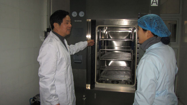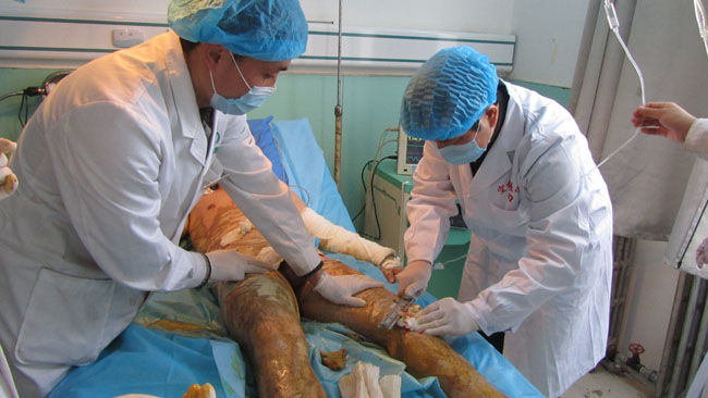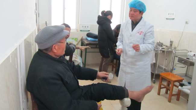 中國燒傷創(chuàng)瘍科技中心胡棟材教授曾多次蒞臨美寶燒傷創(chuàng)瘍空分醫(yī)院指導工作,這次看到醫(yī)院新裝修擴建的病房整潔舒適,醫(yī)療設備齊全醫(yī)護人員為患者精湛醫(yī)療服務而甚感欣慰,胡教授說:“我們做的事業(yè)是積善積德的事情,要用我們的服務用我們先進的技術治好更多的病患,服務于大眾”。在燒傷整形科的重癥監(jiān)護室,胡教授深入病房親自參與燒傷面積達到55%的三度硫酸燒傷患者的清創(chuàng)與換藥,并特別強調(diào)了規(guī)范操作細節(jié)的要求及重癥監(jiān)護室無菌病房的管理。在瘡瘍科胡教授對幾例重度褥瘡病人進行了查房,并對于理想的治療效果給予贊揚“咱們的褥瘡治療技術已經(jīng)達到了國際先進水平!”